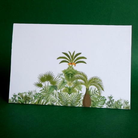 Carte pop-up double 14,5x10cm. La serre est en papier découpé et collé à la main