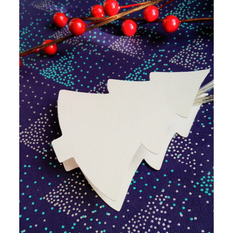 Elle se compose de 10 sapins en papier à dessin (7,5×6,5cm) distants de 10cm, clipsés sur les ampoules LED de la guirlande longue de 115cm.